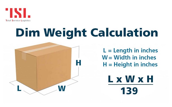 Trọng lượng DIM = Thể tích / Hệ số DIM.